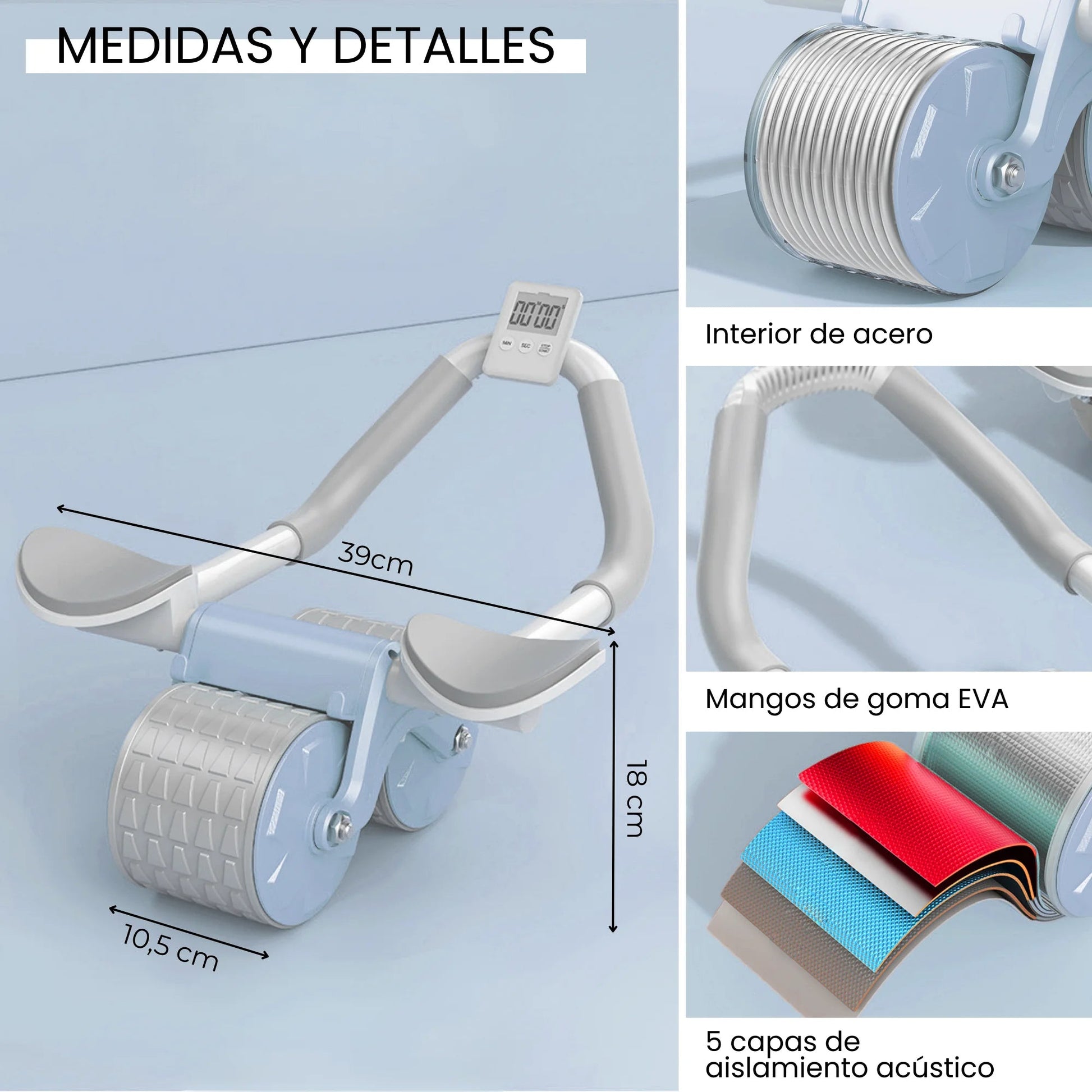 Gracias a su diseño ergonómico y sistema de doble rueda podrás entrenar con tranquilidad y seguridad , adiós a las lesiones , hola a la estabilidad .